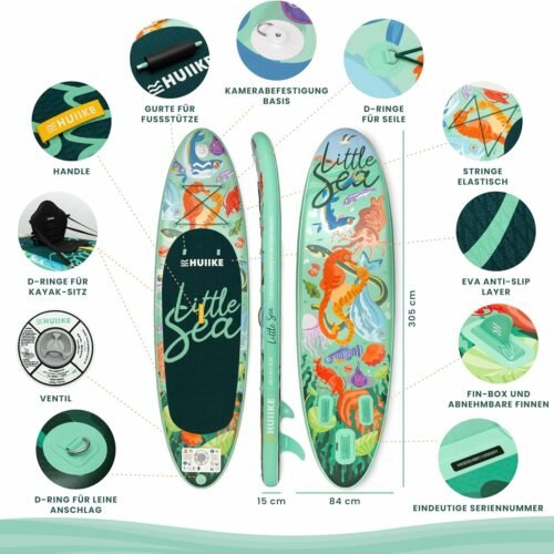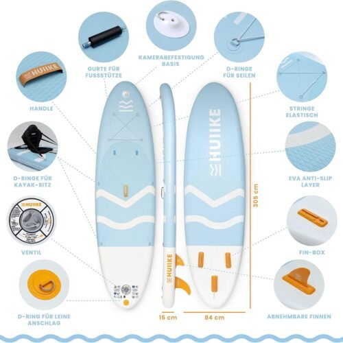 HUIIKE+Stand+Up+Paddling+Board+mit+Zubehör.+Paddel.+Finnen.+Pumpe.+Paddle+Sup+Board+Aufblasbar+Hohe+Stabilität+und+Widerstandsfähigkeit.+305+×+84+×+15+cm.+Belastbar+bis+130+kg