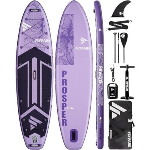 Flypark+11’x34”+Inflatable+Paddle+Boards.+Extra+Wide+SUP+for+420lbs/3Adults.+Yoga+Stand+Up+Paddle+Board.+110L+Backpack.+15+D-Rings.+Shoulder+Strap.+US-Fin.+2-Action+Pump