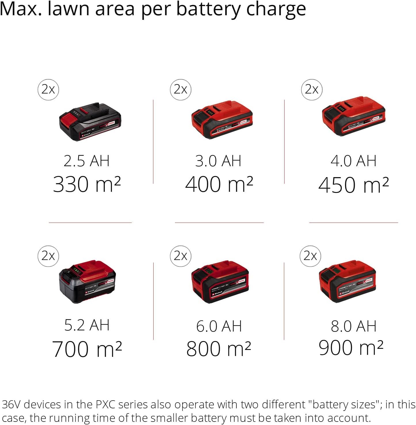 The+Einhell+Rasarro+36/38+cordless+lawn+mower+works+powerfully+and+wirelessly+through+the+green+-+at+every+angle+of+the+gardenThe+Rasarro+is+recommended+for+lawns+up+to+450+m²+-+powered+by+two+powerful+Power+X-Change+40+Ah+batteriesThe+Power+X-Change+system+fast+charger+is+includedThe+matching+Power+X-Change+batteries+for+operating+the+Rasarro+are+included+in+the+deliveryThe+high-quality+lithium-ion+Power+X-Change+batteries+can+be+used+in+all+Einhell+devices+in+the+innovative+system+seriesWith+the+Einhell+Power+X-Twincharger.+the+batteries+are+charged+in+no+time