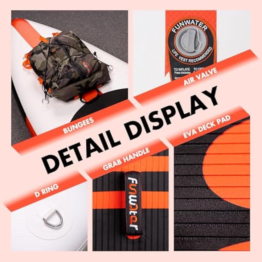 - ++【User+Scenarios】Funwater+paddle+boards+is+your+first+choice+for+water+sports.Funwater+inflatable+paddle+boards+(SUP)+are+suitable+for+all+skill+Levels+to+enjoy+themselves.+explore.+or+adventure+in+water+areas.++