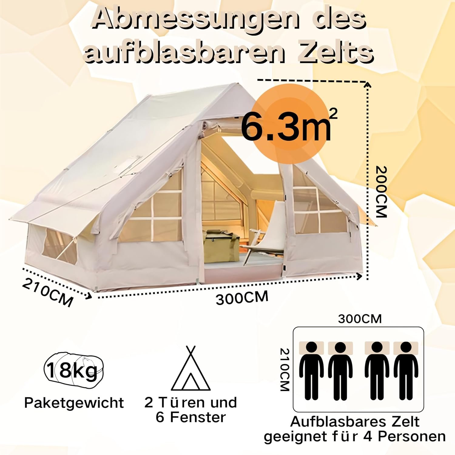 HikerSKY+Aufblasbares+Zelt+für+4/6/8+Personen.+mit+Luftpumpe.+Aufblasbares+Campingzelt.+Wasserdicht.+für+Camping+und+Outdoor-Aktivitäten