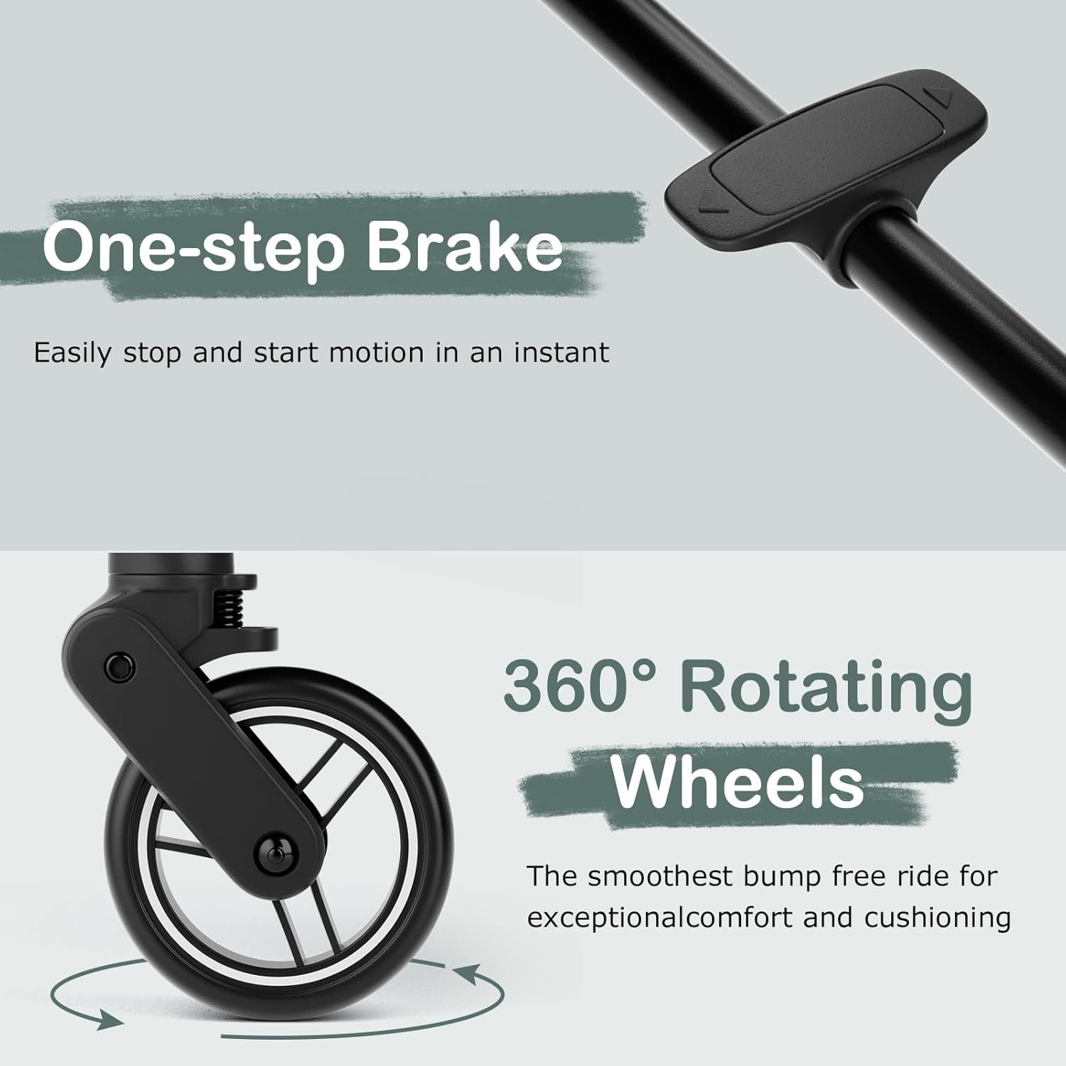 - ++👶Cushioning+Wheels:+The+folded+stroller+have+built-in+cushioning+springs+in+the+front+and+rear+wheels.+providing+perfect+buffering+for+any+surface.+even+on+cobblestones.+The+front+wheels+can+rotate+360+°and+the+rear+wheels+have+brakes+that+parents+can+control+with+just+a+touch+of+their+foot.++