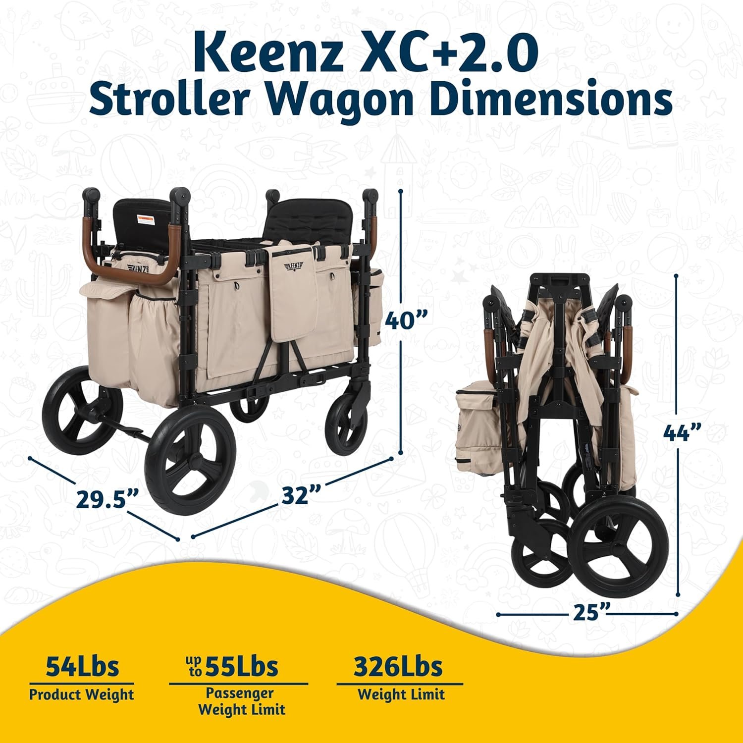 Keenz+XC++2.0+-+Luxury+4+Passenger+Stroller+Wagon+for+Kids+|+Foldable+4+Passenger+Quad+Seater+with+Adjustable+Canopy+|+Mocha