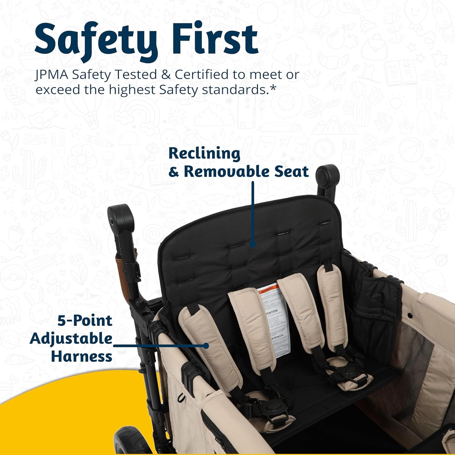 - AMPLE+SPACE:+This+wagon+stroller+comfortably+accommodates+up+to+4+kids.+making+it+the+ideal+choice+for+growing+families+or+playdate+that’s+equipped+with+four+passenger+seats.+each+with+its+own+5-point+safety+harness