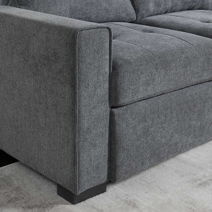 The+Kendale+Fabric+Sofa+Chaise+was+designed+with+today’s+consumer+in+mind.+offering+comfort+and+function+in+addition+to+style.+The+high-density+foam+cushions+offer+a+comfortable+seat.+while+drop-in+pocket+coils+and+sinuous+springs+prevent+sagging.+Easily+accommodate+guests+with+a+pull-out+bed+and+storage+compartment+for+blankets+and+pillows.+The+storage+and+bed+pulls+can+be+easily+tucked+under+the+cushions+when+not+in+use.+Kendale+is+upholstered+in+ATHENA™+performance+fabric.+that+is+stain-resistant.+water+repellent+and+easy+to+clean.+While+durable.+the+gray+fabric+is+also+soft+to+touch.+Sleek+track+arms+and+solid+wood+block+feet+give+Kendale+a+contemporary+feel.+while+flange+welt+trim.+button+less+tufting.+and+box+edge+cushions+offer+a+tailored+look.