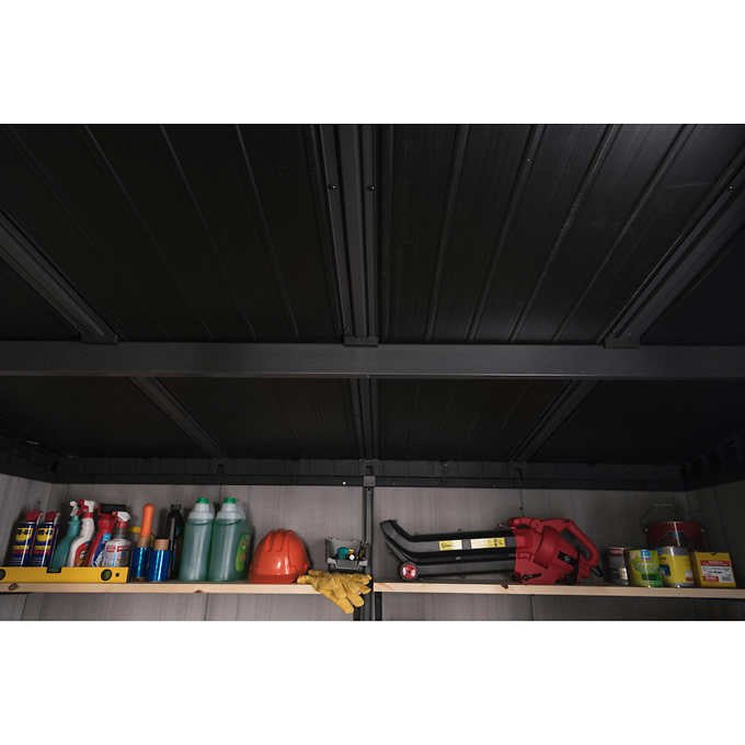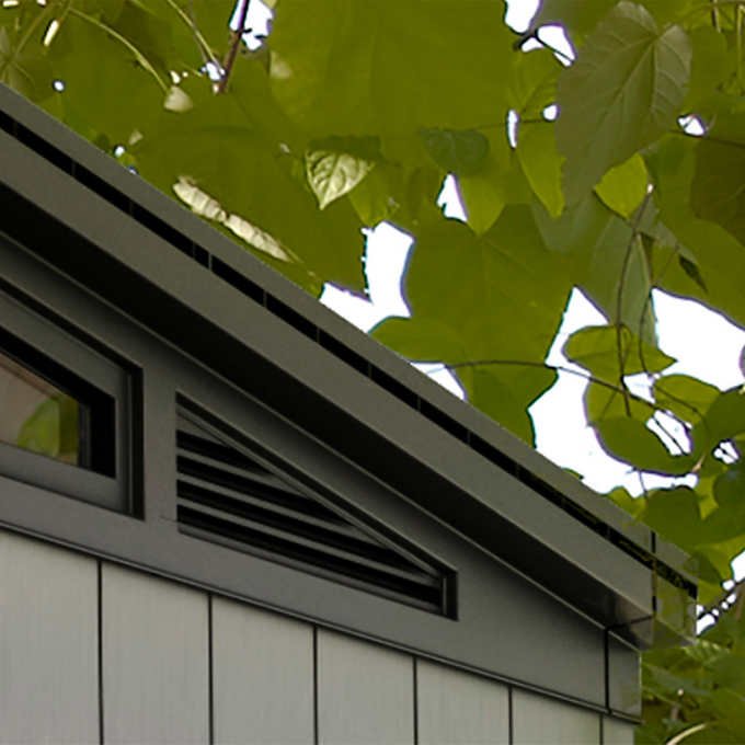 The+Artisan+resin+shed+has+a+weathered+wood+look+and+feel+in+a+warm+grey+shade.+It+is+built+with+double+wall+panels.+a+robust+roof+and+steel+reinforcements.+The+tongue+and+groove+structure.+which+includes+a+heavy-duty+floor+and+a+door+that+can+accommodate+a+lock+(not+included).+is+easy+to+assemble+and+is+maintenance+free.+Walls+and+doors+can+be+painted+to+customize+your+look.+The+Artisan+is+an+innovation+in+resin+sheds+and+has+a+contemporary+design+with+clean+lines+and+crystal+clear+windows+for+natural+lighting.
