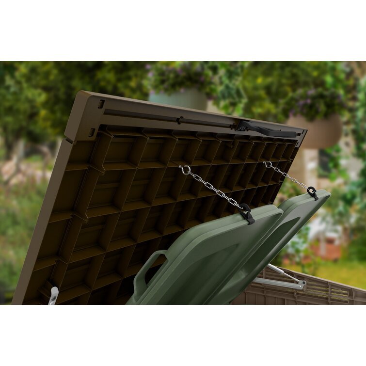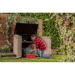 Store+your+household+goods+in+style+with+our+convenient+plastic+shed.+You’ll+love+the+way+this+attractive+storage+container+protects+your+belongings+while+complementing+your+outdoor+decor.+Perfect+for+lawn.+deck.+and+garden.+our+outdoor+storage+box+is+lightweight+yet+sturdy.+This+attractive+Keter+shed+will+look+great+in+your+backyard.+garden+area.+or+next+to+the+pool.+Its+neutral+colors+and+wood-look+texture+are+perfect+for+any+setting.+Everyone+in+the+family+will+love+having+easy+access+to+trash+cans.+pool+toys.+pet+accessories.+and+other+household+essentials.+Items+can+be+reached+by+opening+the+lid+or+the+two+front+doors.+Wide-opening+doors+make+stashing+all+your+smaller+items+quick+and+convenient.+Our+resin+shed+requires+no+special+care;+just+wipe+it+with+a+damp+cloth+to+clean+it.