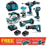 1+x+Makita+18V+Brushless+Hammer+Drill+Driver+Skin+DHP486Z1+x+MAKITA+18V+Brushless+1/4+Impact+Driver+Skin+DTD172Z1+x+MAKITA+18V+Brushless+165mm+Circular+Saw+Skin+DHS680Z1+x+MAKITA+18V+Brushless+Reciprocating+Saw+Skin+DJR187Z1+x+MAKITA+18V+Brushless+Laminated+Trimmer+Skin+DRT50Z1+x+MAKITA+18V+Brushless+Starlock+Max+Multi-Tool+Skin+DTM52ZX32+x+MAKITA+18V+5.0Ah+Li-Ion+Batteries+BL1850B-L1+x+MAKITA+18V+Li-Ion+Battery+Charger+DC18RC+19558921+x+MAKITA+Canvas+Tool+Bag+Fits+LXT418+and+LXT423+1999369SpecificationsPart+Number+DLX6120TX1Barcode+0088381767729Combo+Kit+6+PiecesWired+/+Wireless+WirelessVoltage+18VBrushless+/+Brushed+BrushlessBatteries+Supplied+2×5.0AhBattery+Capacity+5.0+AhBattery+Type+Lithium+IonBattery+/+Manual+BatteryBrand+ViewWarranty+3+Years