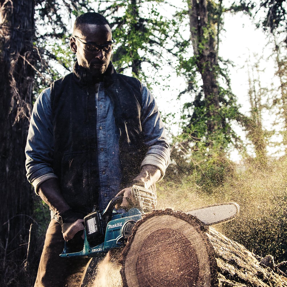 - 36V+performance+from+two+18V+batteries+connected+in+series.+The+batteries+are+placed+in+parallel+in+separate+battery+docking+stations.