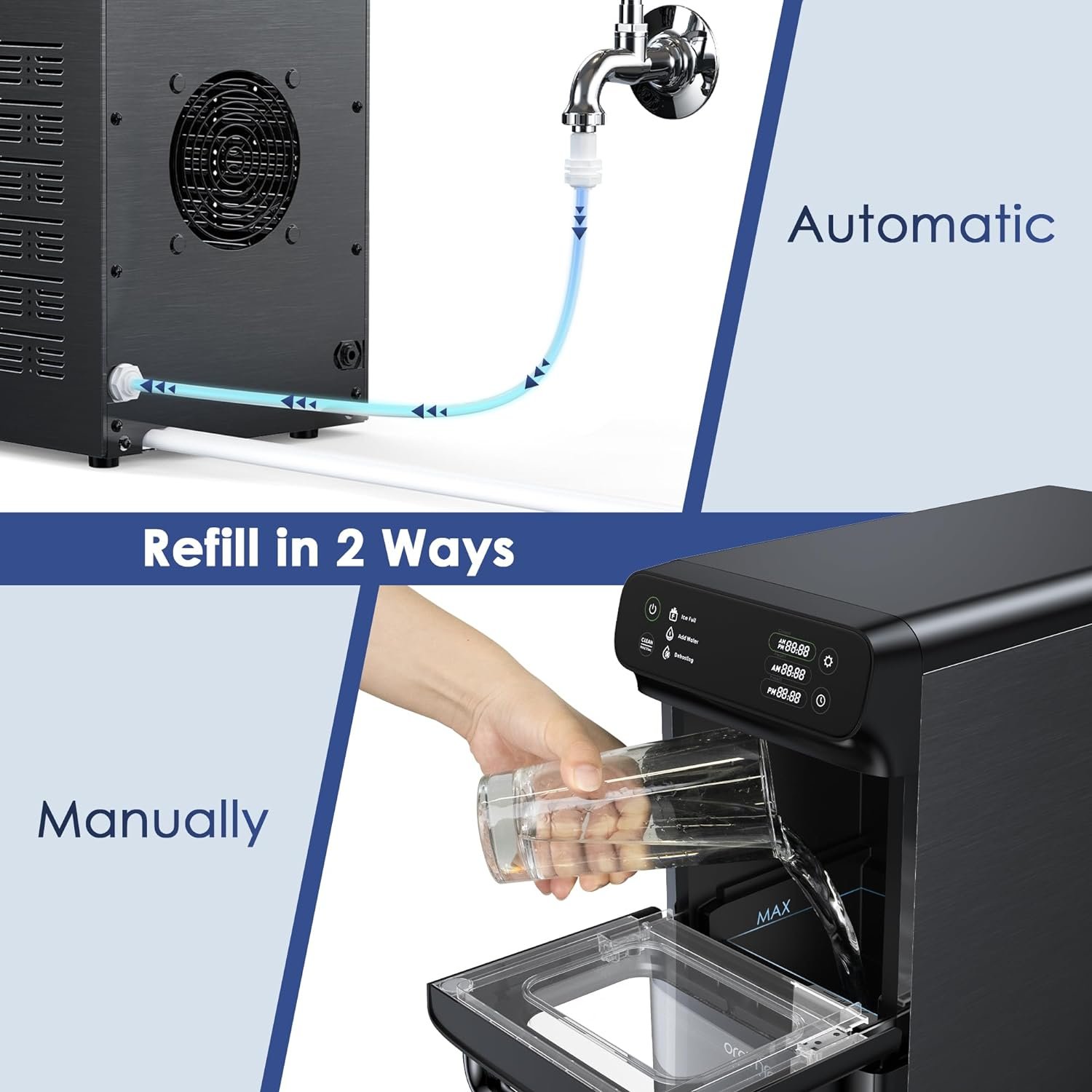 Refill+in+2+Ways+-+Oraimo+Ice+Maker+Countertop+provides+two+ways+of+water+refill.+water+hookup+and+manual.+It+is+recommended+to+use+pure+water+or+connect+with+water+filtration+system+to+prolong+the+service+life+of+the+Ice+Machine.