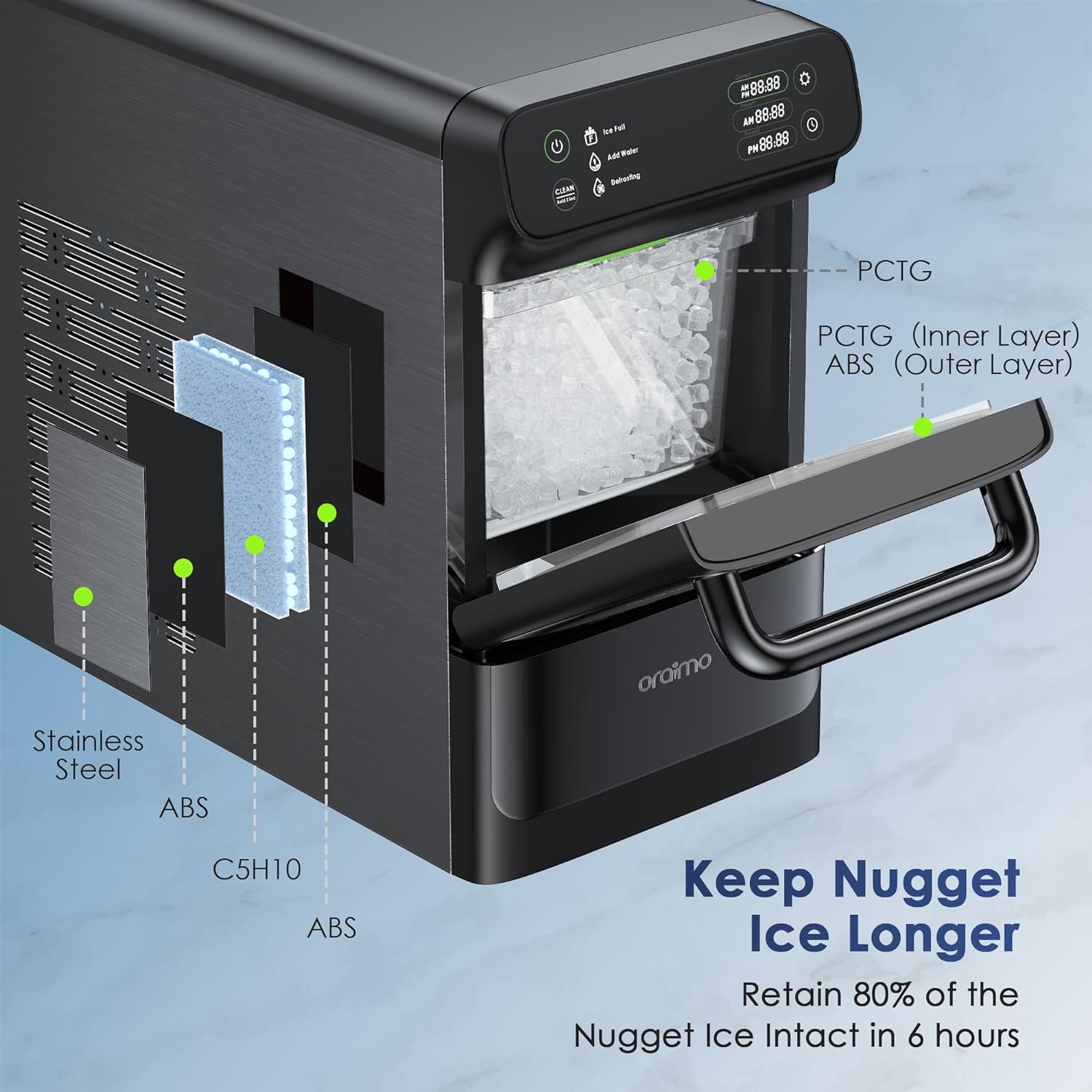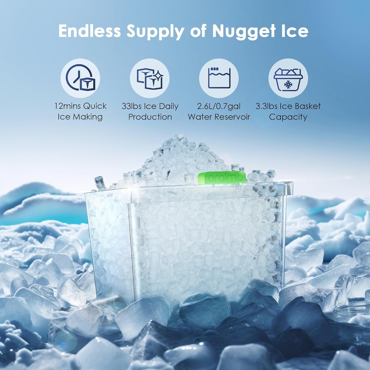 Endless+Supply+of+Chewable+Nugget+Ice+-+With+more+than+1+lbs+per+hour+production.+plus+an+ice+basket+that+holds+up+to+3.3+lbs+Nugget+Ice+and+a+2.8+L+water+reservoir.+you+don’t+have+to+worry+about+running+out+of+Nugget+Ice.