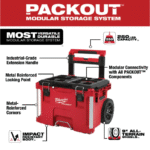 The+PACKOUT+modular+storage+system+is+the+industry’s+most+durable+and+versatile+storage+system.+The+PACKOUT+rolling+tool+box+is+constructed+with+impact+resistant+polymers+and+metal+reinforced+corners+so+it+can+withstand+harsh+jobsite+environments.+The+rolling+tool+storage+box+connects+with+all+other+PACKOUT+system+components+via+integrated+locking+cleats+and+features+a+250+lbs.+of+weight+capacity.+An+industrial-grade+extension+handle+and+9+in.+all-terrain+wheels+ensure+the+tool+box+can+be+rolled+anywhere+on+the+jobsite.+An+IP65+rated+weather+seal+protects+tools+and+accessories+from+rain+and+other+jobsite+debris.+Interior+organizer+trays+allow+users+to+keep+equipment+organized+to+fit+their+needs.+Reinforced+hinges+and+carry+handle+ensure+the+rolling+tool+box+is+easily+transportable+wherever+it+is+needed.+The+PACKOUT+modular+storage+allows+users+to+customize+and+build+their+own+storage+system+to+easily+transport+and+organize+tools+and+accessories.