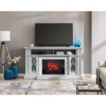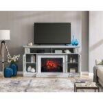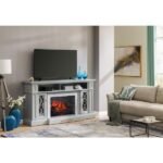 Parkbridge+68+in.+Freestanding+Electric+Fireplace+TV+Stand+in+Light+Gray+with+KD+Insert
