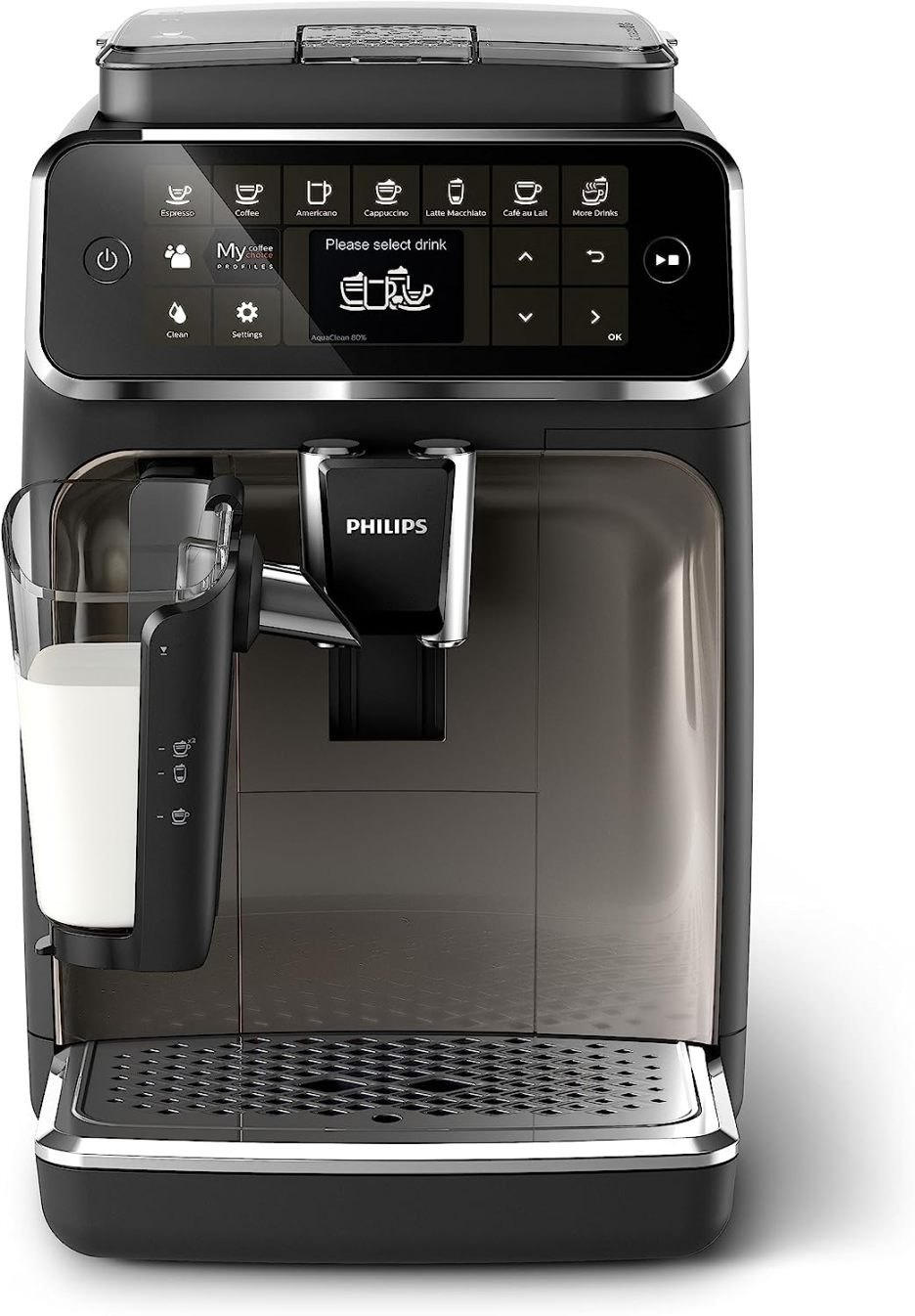 Philips+4300+Series+fully+automatic+espresso+machine+-+LatteGo+milk+frother.+8+coffee+varieties.+intuitive+touch+display.+black.+(EP4347/94)