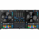 At+the+heart+of+each+deck+on+the+DDJ-REV7+are+the+new+7-inch+motorized+jog+wheels.+featuring+the+same+rotational+stability+as+a+12-inch+turntable+and+recreating+the+feel+of+real+vinyl+records.+The+jog+wheels+acrylic+top+plate+is+finished+with+a+vinyl-like+texture+for+an+effortless+finger+grip.+Artists+can+choose+between+low-+and+high-torque+settings+and+use+the+two+included+slip+sheets+inside+each+deck+which+fit+neatly+inside+the+jog+wheel+to+find+their+preferred+amount+of+friction.+With+the+DDJ-REV7.+manipulating+and+fading+out+sound+is+simple.+Artists+can+switch+between+a+rotation+speed+of+33⅓+or+45rpm+anytime+and+use+the+Stop+Time+setting+to+adjust+how+long+it+takes+for+the+music+to+end+when+pressing+pause.+Artists+can+also+halt+the+music+immediately+or+slow+it+down+gradually.+as+if+the+power+on+an+analog+deck+was+turned+off.